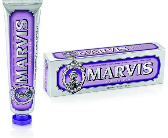 Η οδοντόκρεμα Marvis Jasmin Mint Toothpaste αναμιγνύει το λουλουδένιο άρωμα από το γιασεμί μαζί με την φρεσκάδα της μέντας. Περιέχει την κλασική φόρμουλα της Marvis που λευκαίνει και προστατεύει τα δόντια, αναζωογονεί την αναπνοή και καταπολεμάει την πλάκα και την τερηδόνα.