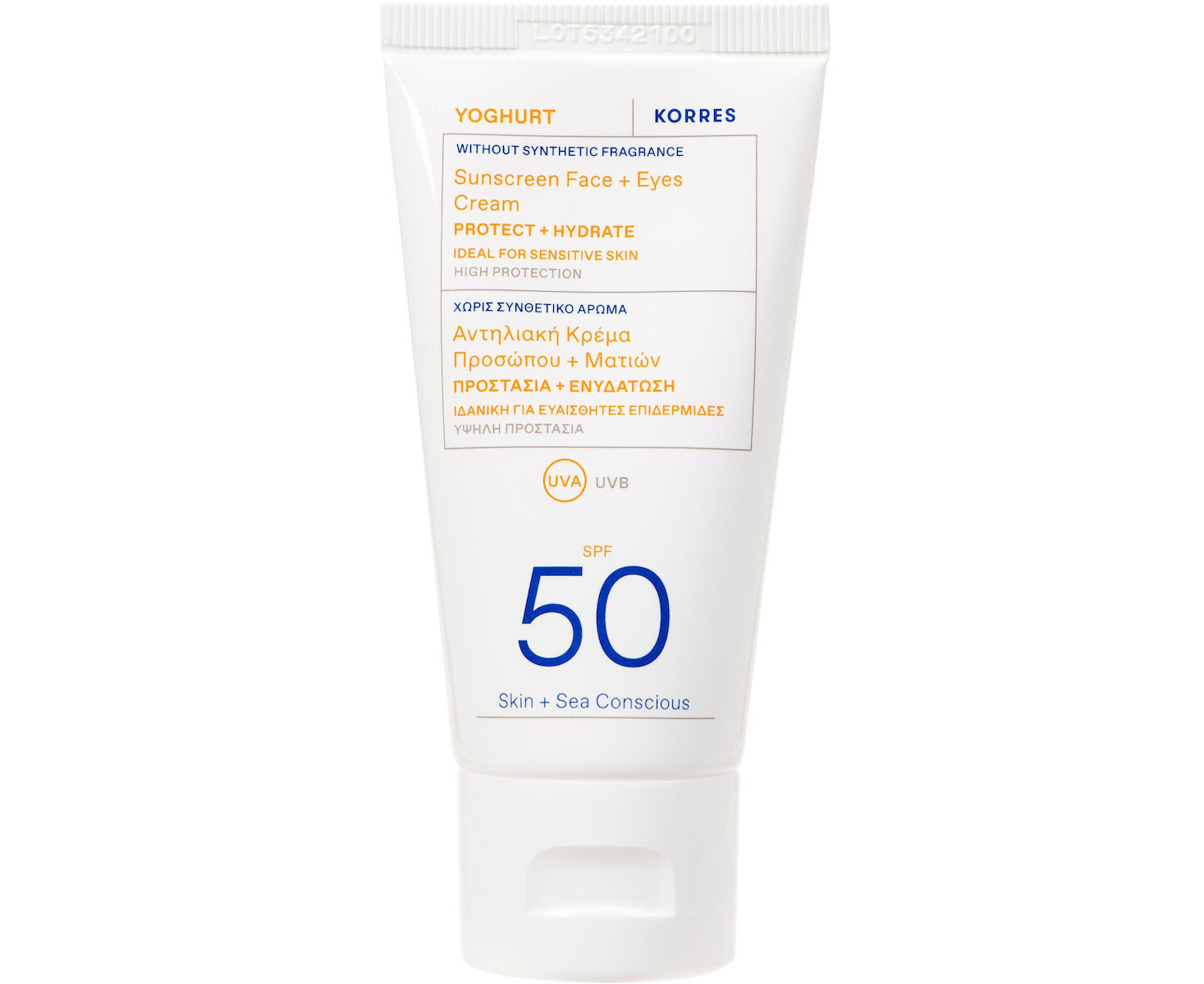 Αντηλιακή κρέμα προσώπου και ματιών υψηλής προστασίας, της σειράς Γιαούρτι της εταιρίας Korres.