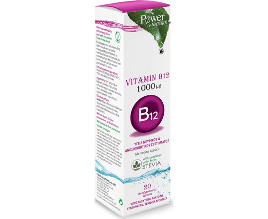 Power of Nature Vitamin B12 1000μg Stevia Συμπλήρωμα Διατροφής για την Υγεία Νευρικού & Ανοσοποιητικού Συστήματος 20 Effer.tabs