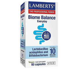 Lamberts Biome Balance Everyday  - Ισχυρή φόρμουλα προβιοτικών για ημερήσια ισορροπία. Περιέχει 60 κάψουλες με  10 δισεκατομμύρια φιλικά βακτήρια  ανά κάψουλα, προερχόμενα από τα στελέχη  Lactobacillus acidophilus  και  Bifidobacterium bifidum . Αυτά τα στελέχη...